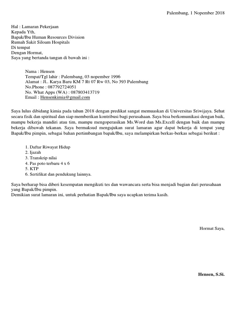 Contoh surat lamaran kerja rumah sakit siloam. We did not find results for: Check spelling or type a new query. Maybe you would like to learn more about one of these?