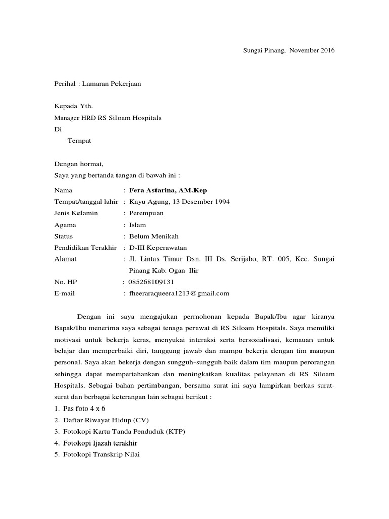 Maybe you would like to learn more about one of these? Contoh surat lamaran kerja rumah sakit siloam. We did not find results for: Check spelling or type a new query.